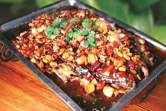 在九種王牌烤魚熱銷的同時,唐棠又發(fā)現(xiàn)了一個問題:只賣烤魚結構有些單一,如果有六位客人就餐,點兩條烤魚略少,點三條烤魚又吃不完,而且口味有些重復,此時他們就想加幾道別的菜“摻和”一下。唐棠說:“為了豐富菜品架構,我又增添了八、九道香鍋菜,如新兵手拉手(即豬手+雞爪香鍋)、政委鴨頭(即麻辣鴨頭)等。除此之外,我還推出了幾道自己的私房涼菜!