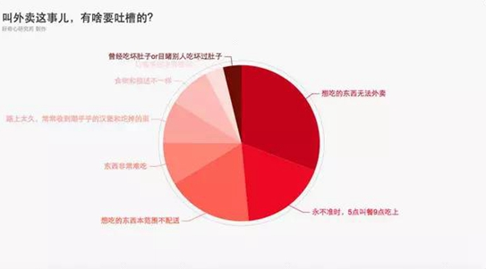 「好奇心研究所」此前做過一次“叫外賣這事兒,有啥要吐槽的?”的投票,我們收獲了共 1871 次表態(tài),結(jié)果表明:對外賣實際口味的投訴遠遠少于對幻想中的外賣的憧憬——30.7% 的投票是在抱怨想吃的東西無法外賣;17.7% 在抱怨所在區(qū)域內(nèi)可選外賣太少,想吃的東西都不在配送范圍內(nèi)。