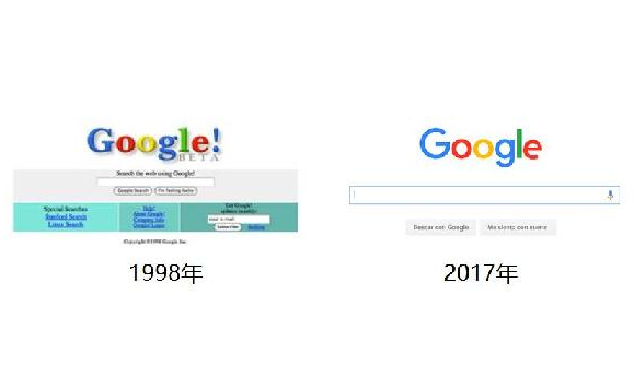 最重要的例子是 Google。Google 1998 年頁面長這樣,2017 年頁面長這樣,由消費(fèi)者加入的入口越來越簡單,Google 越來越聰明。